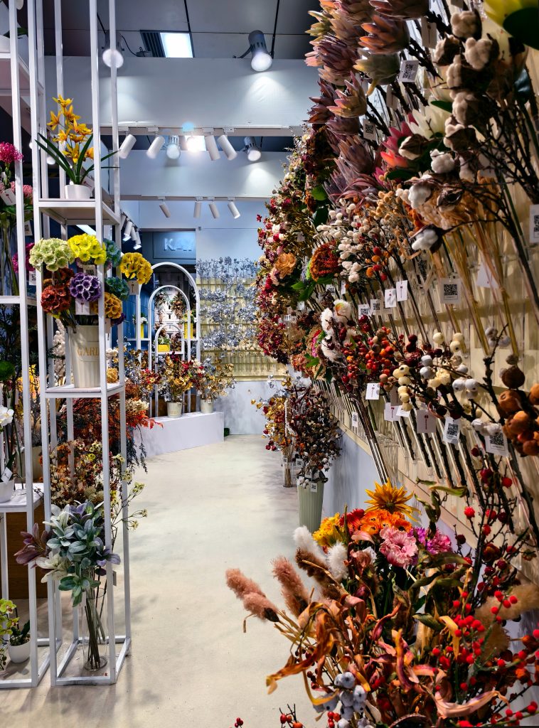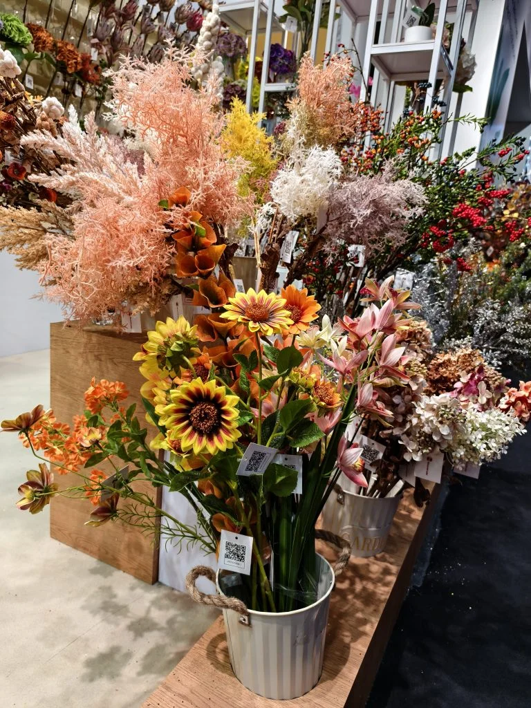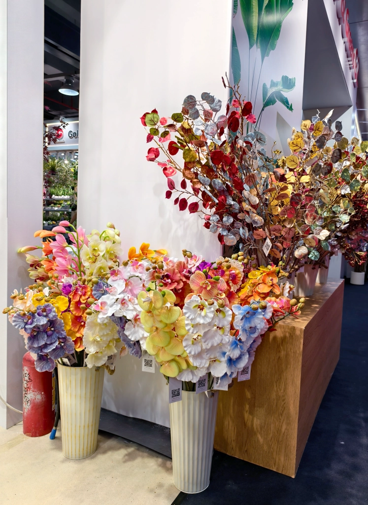As a leading artificial flower manufacturer in China, TrustFloral showcased an inspiring collection of new autumn and winter designs — including Christmas-themed artificial flowers, silk chrysanthemums, butterfly orchids, and realistic greenery branches.