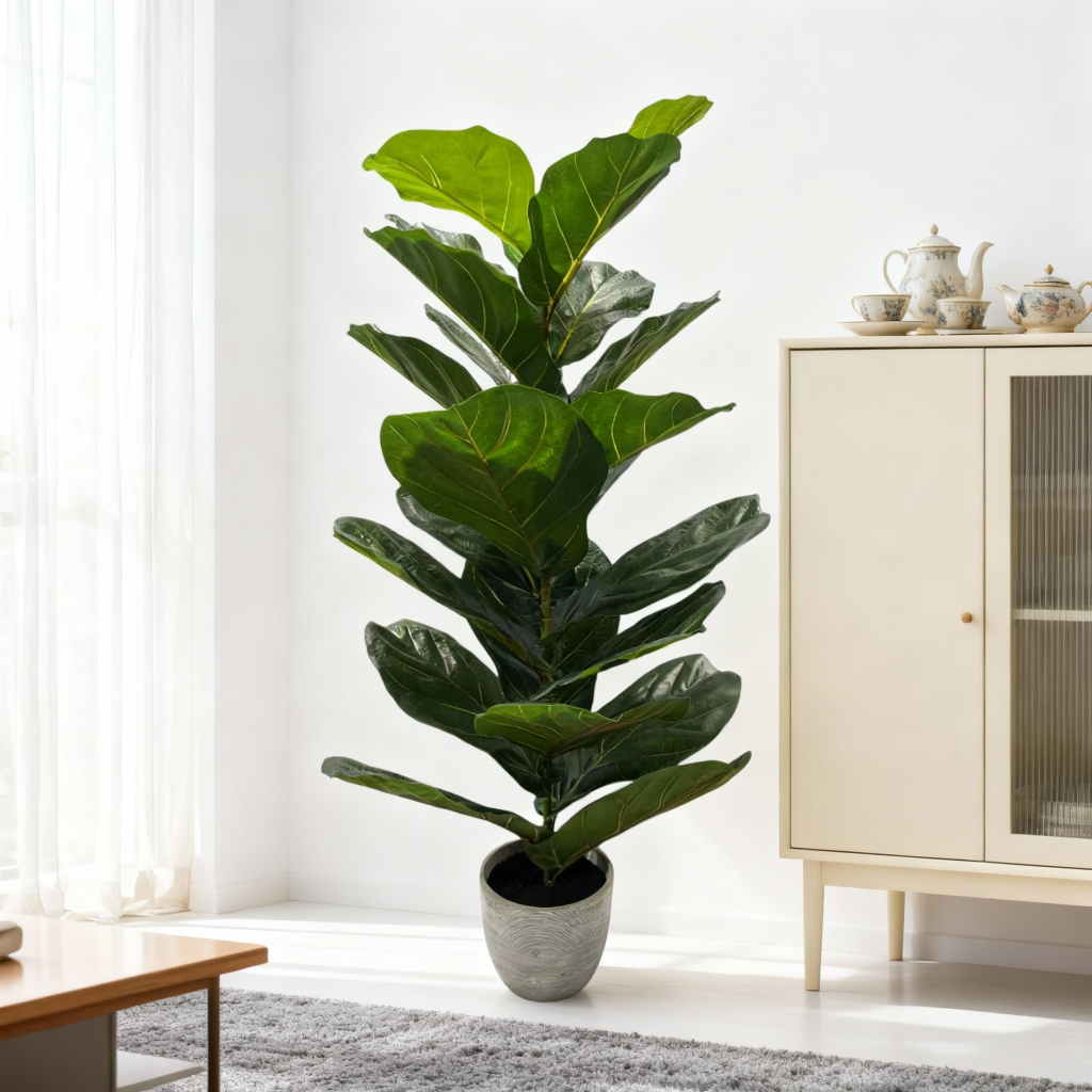 Este árbol de higuera de hoja artificial de violín de 130 cm presenta hojas de plástico de EP más anchas y abundantes, lo que le da a la planta un aspecto audaz y escultórico. La textura gruesa y correosa de las hojas y las vetas definidas se parecen mucho a las higueras de hoja de violín reales, creando un pequeño pero impactante acento de vegetación adecuado para espacios modernos. Perfecto para compradores que buscan opciones realistas de higuera de hoja falsa en tamaños compactos.