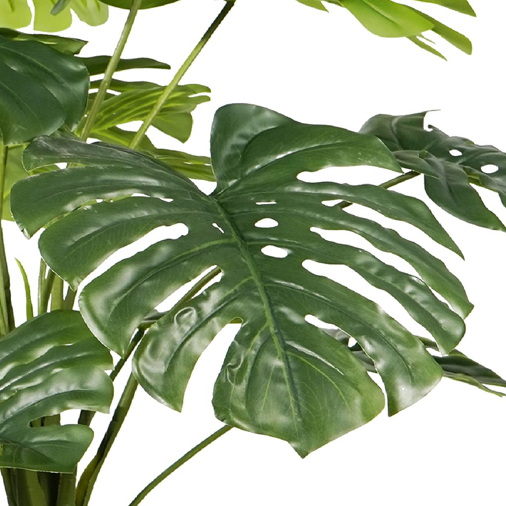 Esta Monstera Artificial de 2 Troncos y 26 Hojas de 180 cm presenta dos troncos gruesos y muy realistas que se extienden hacia arriba formando una exuberante corona de hojas partidas. La distribución de las hojas es densa y natural, creando una silueta completa ideal para interiores modernos y grandes proyectos de decoración comercial. Ligeramente estructurado como un Árbol Monstera Artificial, ofrece una altura y presencia impresionantes.