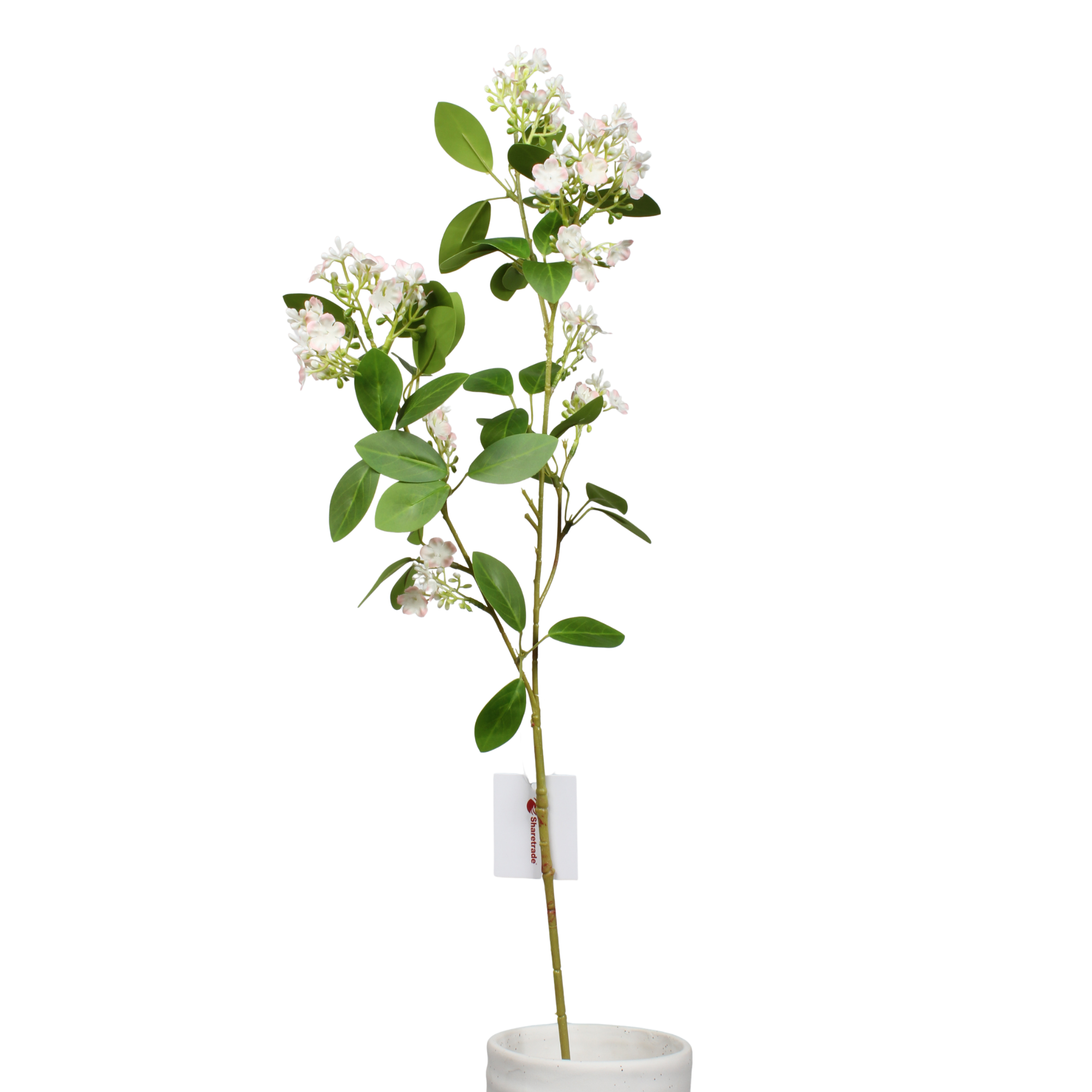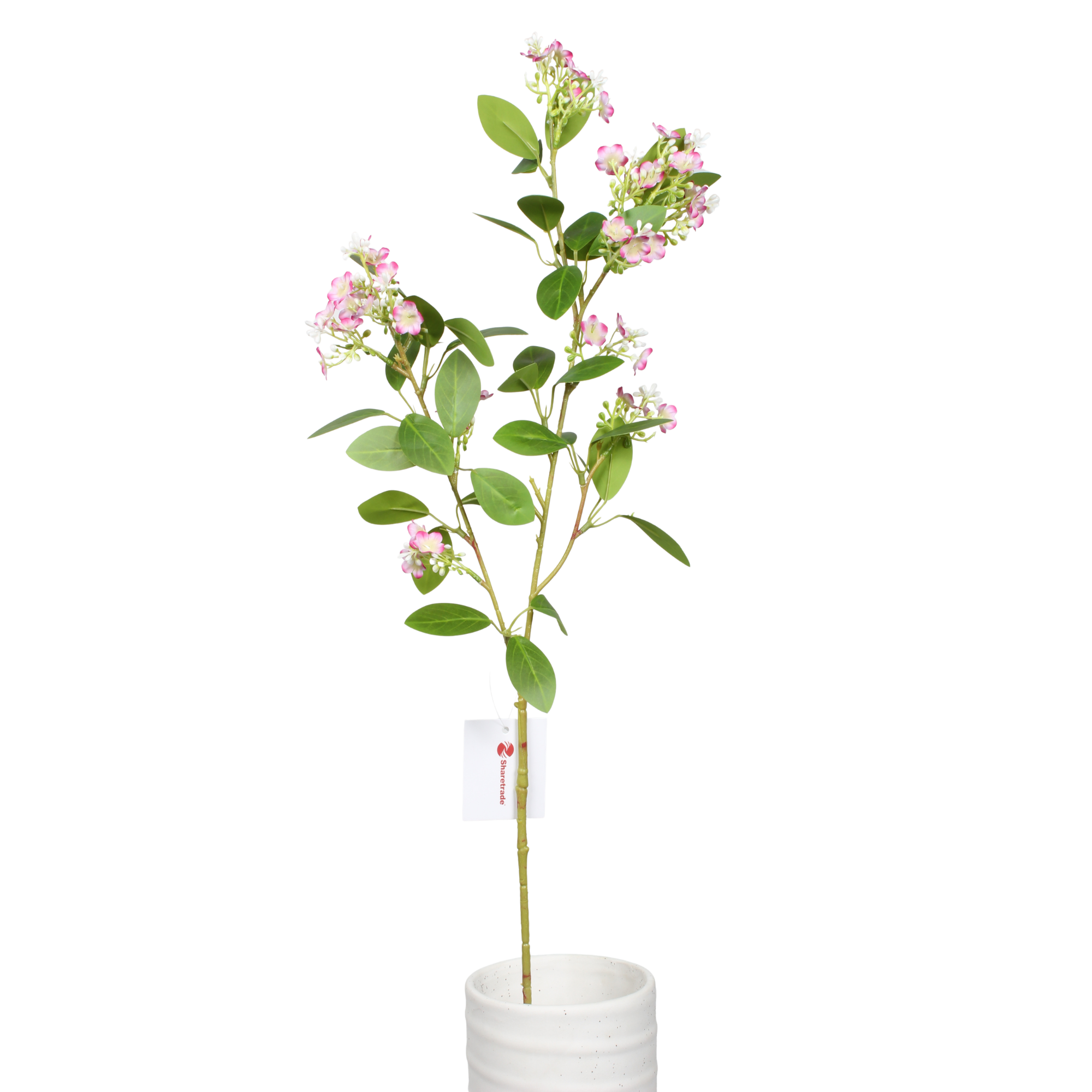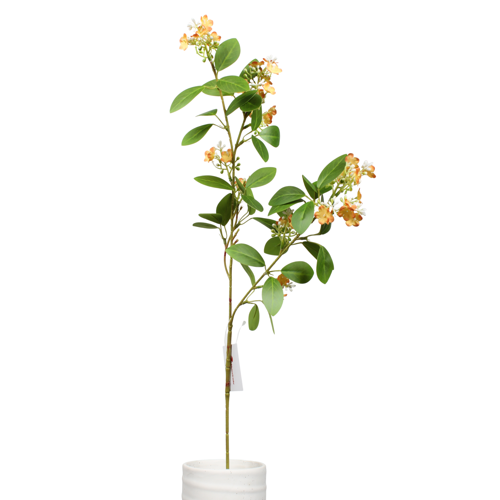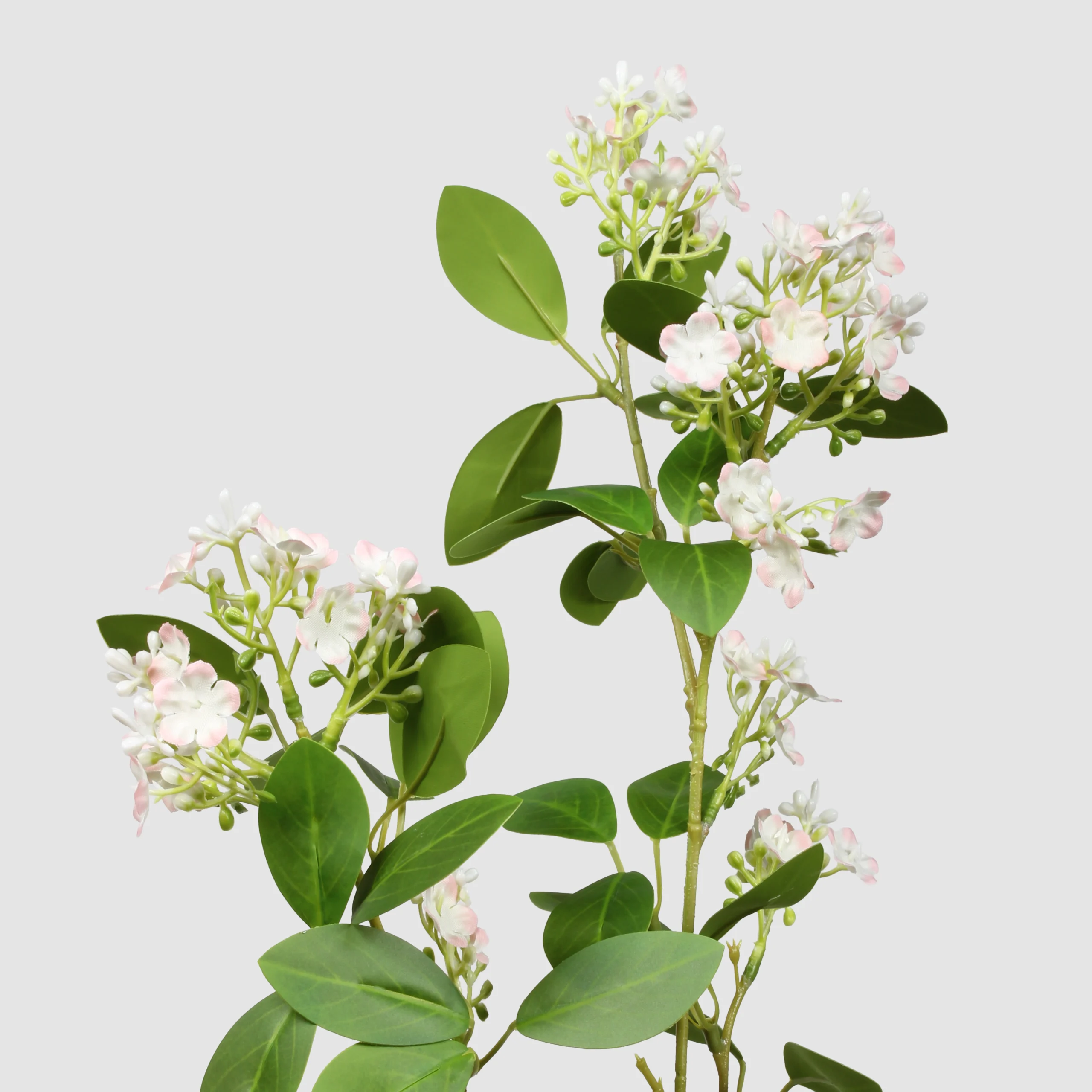 Este tallo de lila artificial de nieve de 80 cm presenta racimos de pequeñas flores de seda dispuestas a lo largo de una rama larga y flexible, creando un suave aspecto inspirado en las flores silvestres. La estructura aireada y los pequeños detalles florales lo convierten en un tallo ideal para relleno para arreglos florales y decoración estacional.