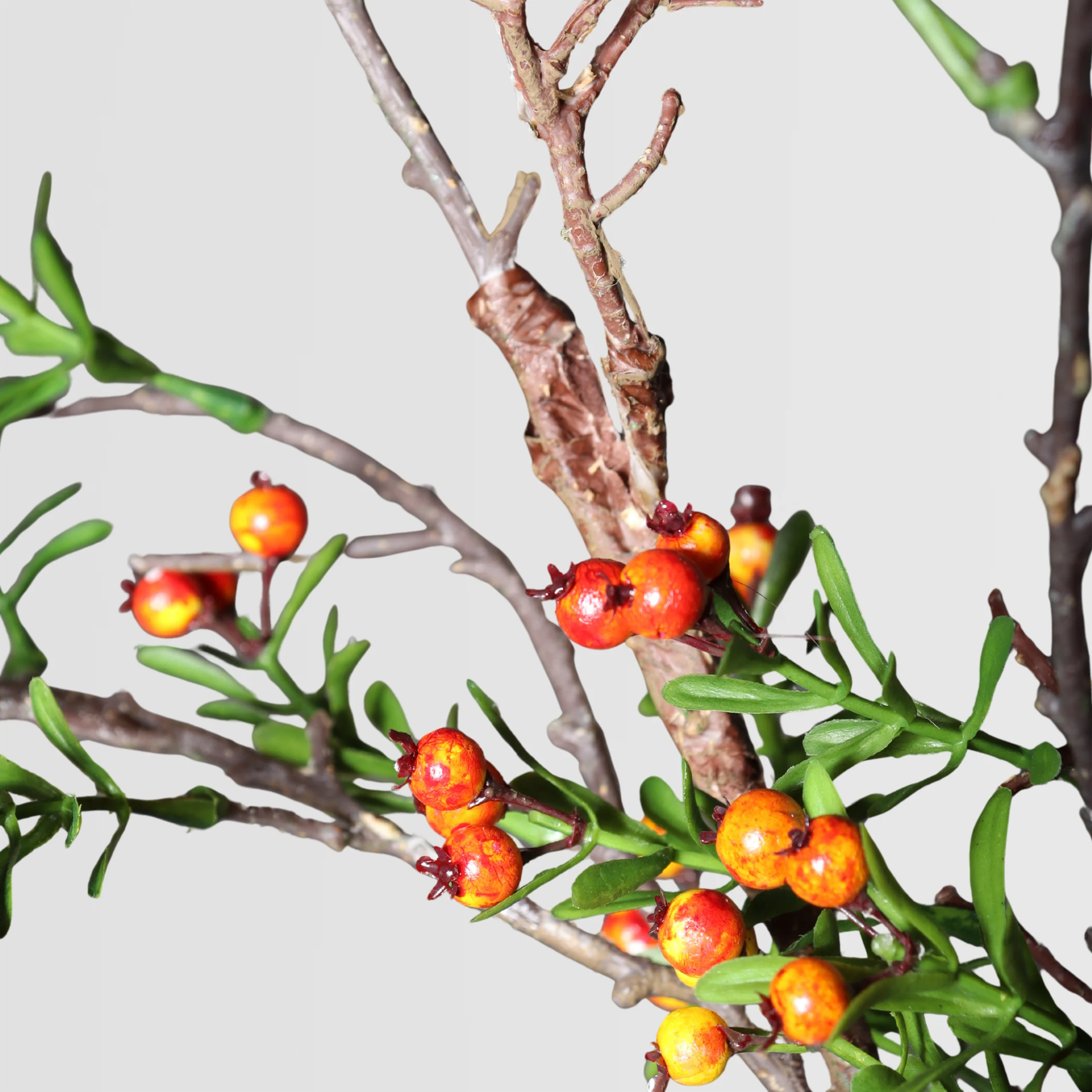 This 110cm artificial firethorn branch is crafted to replicate the natural beauty of firethorn, with clusters of glossy, realistic berries and lush leaves. Its rich color palette evokes the warmth and vibrancy of autumn and early winter, making it perfect for seasonal arrangements or high-end décor projects.
