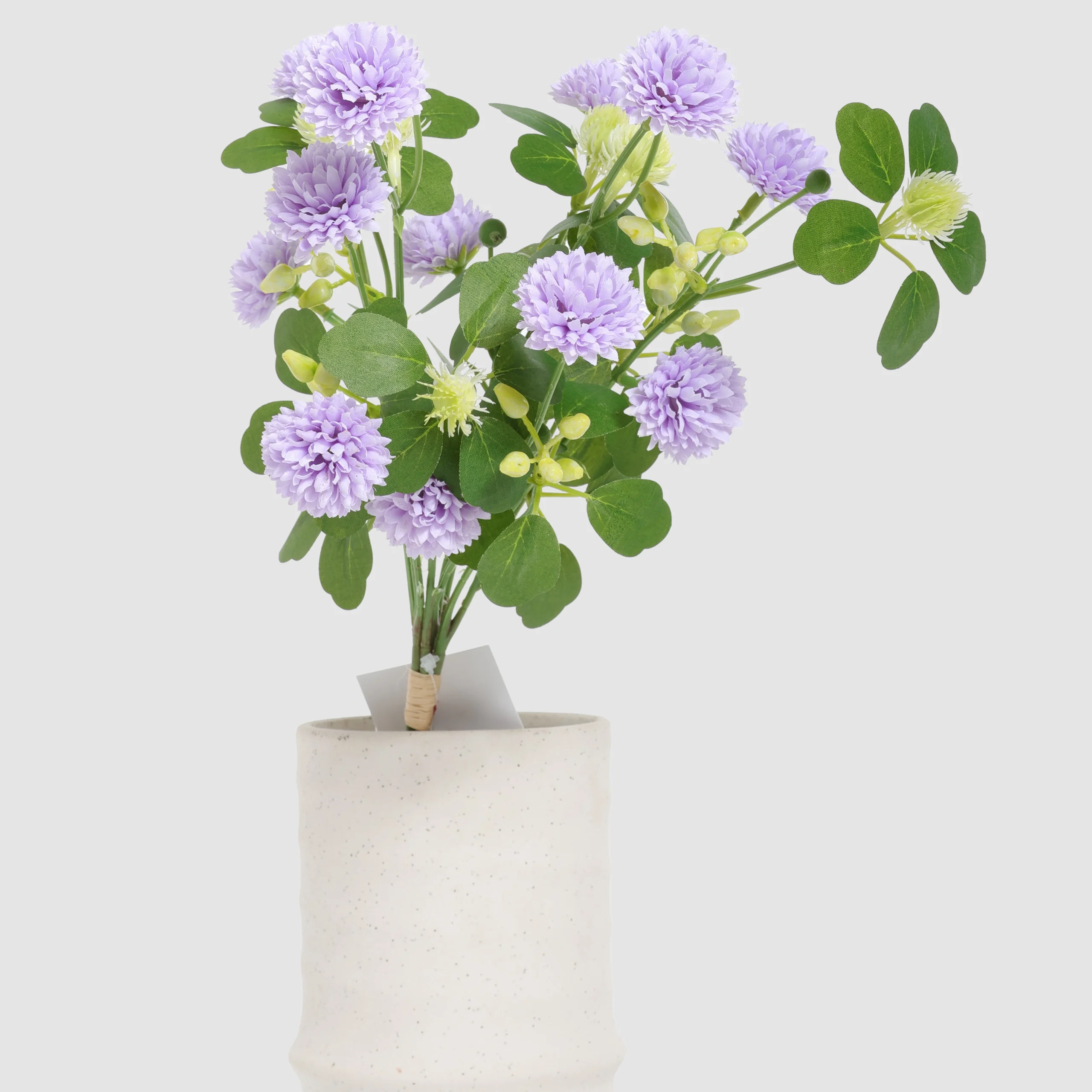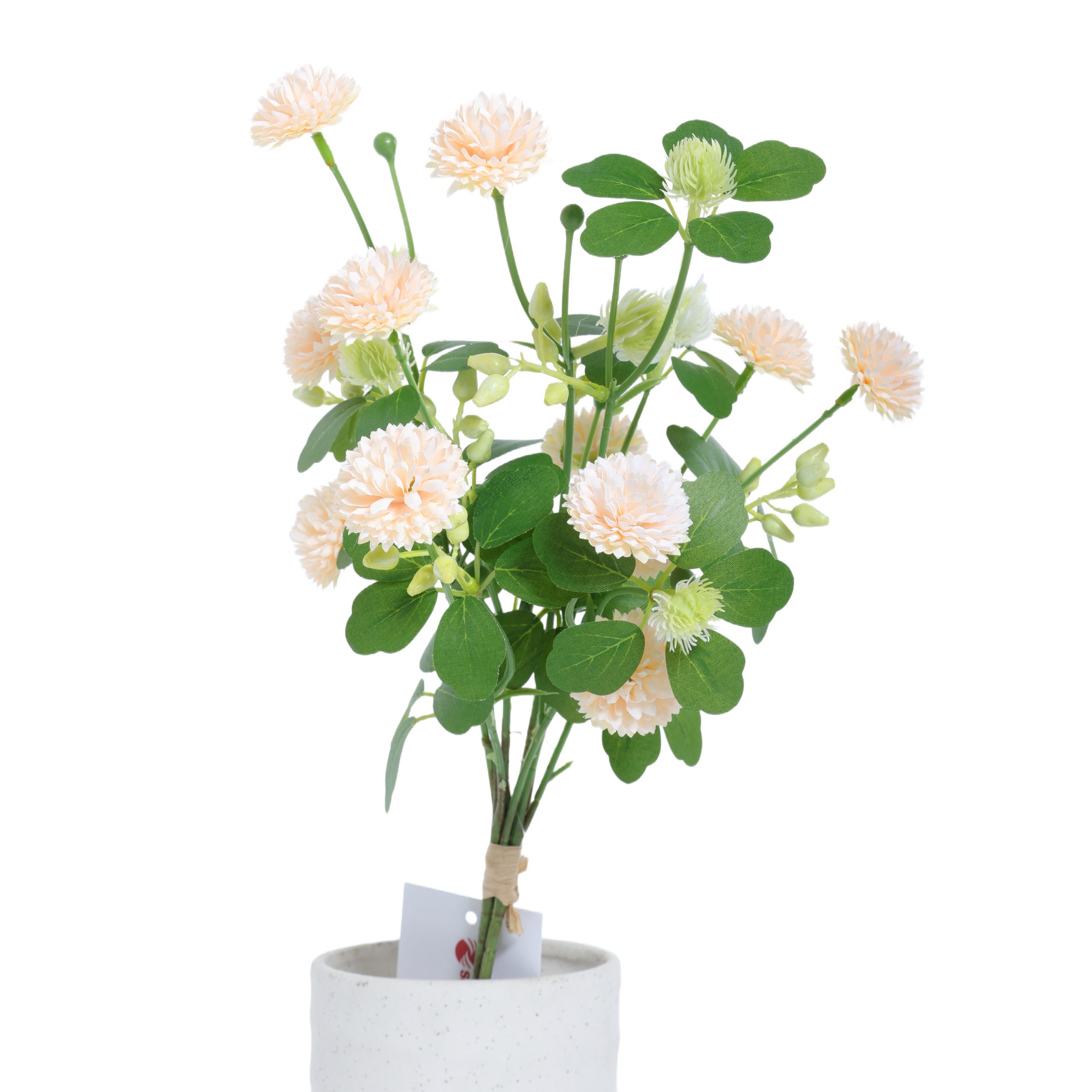 This 48cm Artificial Small Bud Chrysanthemum Bouquet features clusters of delicate small blooms with layered green foliage, creating a soft and natural spring–summer look. The compact bouquet form makes it suitable for direct display or mixed floral styling.