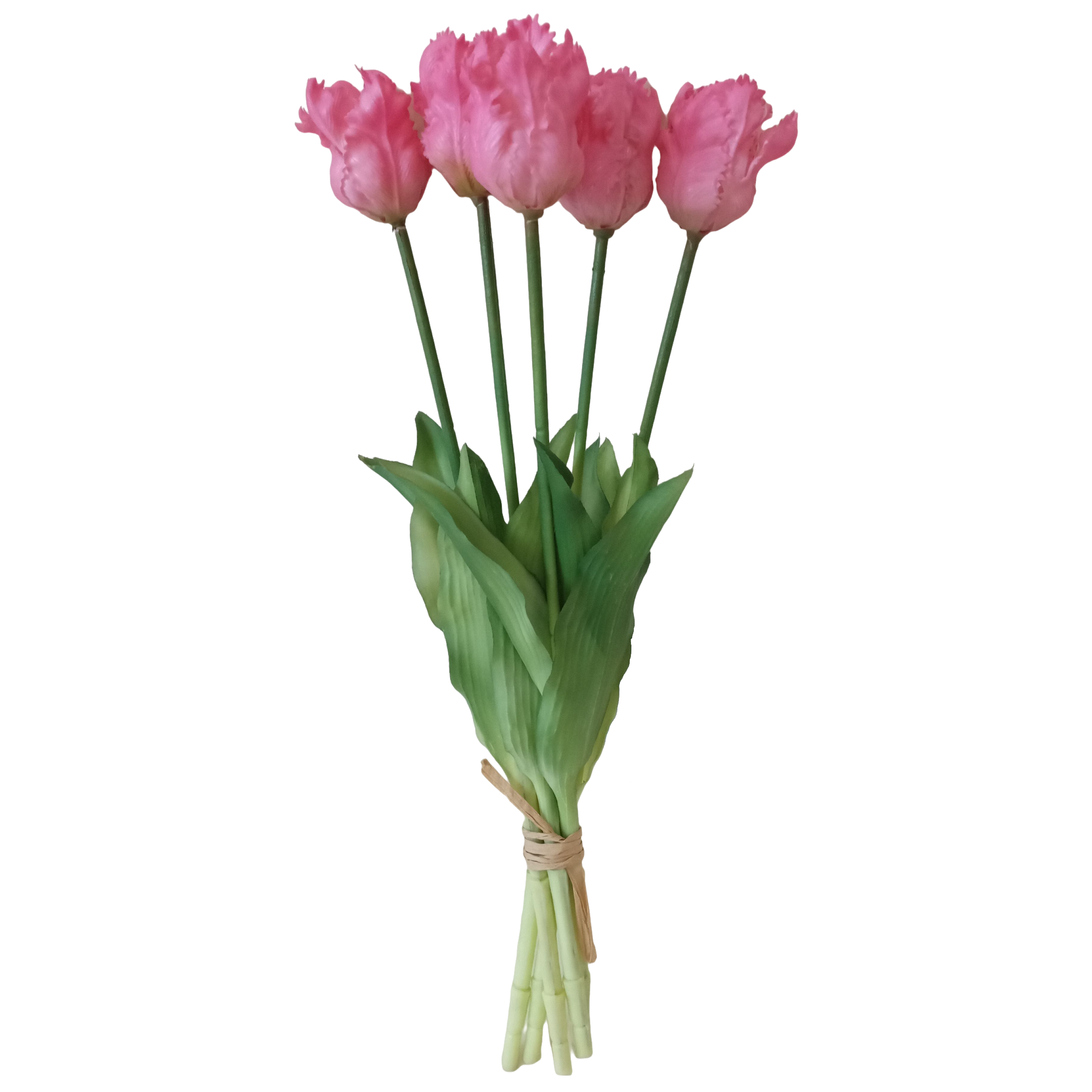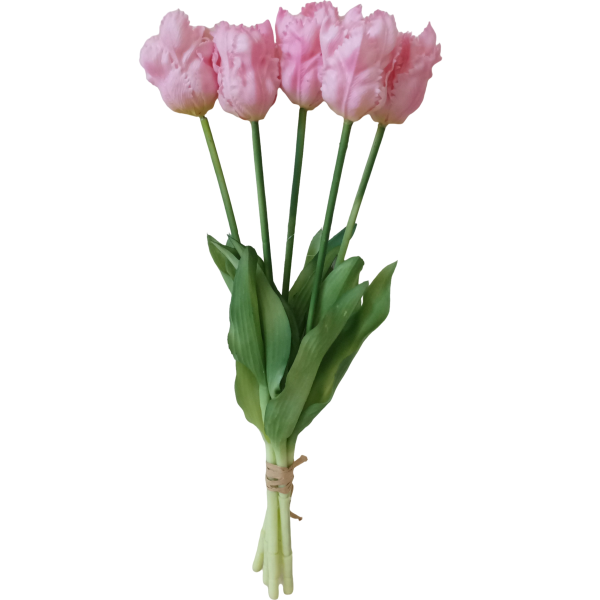 Our 5-head artificial Parrot tulip bouquet is crafted from premium PET material, offering a soft, real-touch feel and a lifelike appearance. With vibrant colors and flexible stems, these tulips bring a fresh and elegant touch to any setting, from home décor to weddings and event arrangements. Durable and maintenance-free, they are ideal for wholesale buyers, retailers, and floral designers. Custom colors and packaging options are available to suit your needs. Contact us for bulk inquiries!
