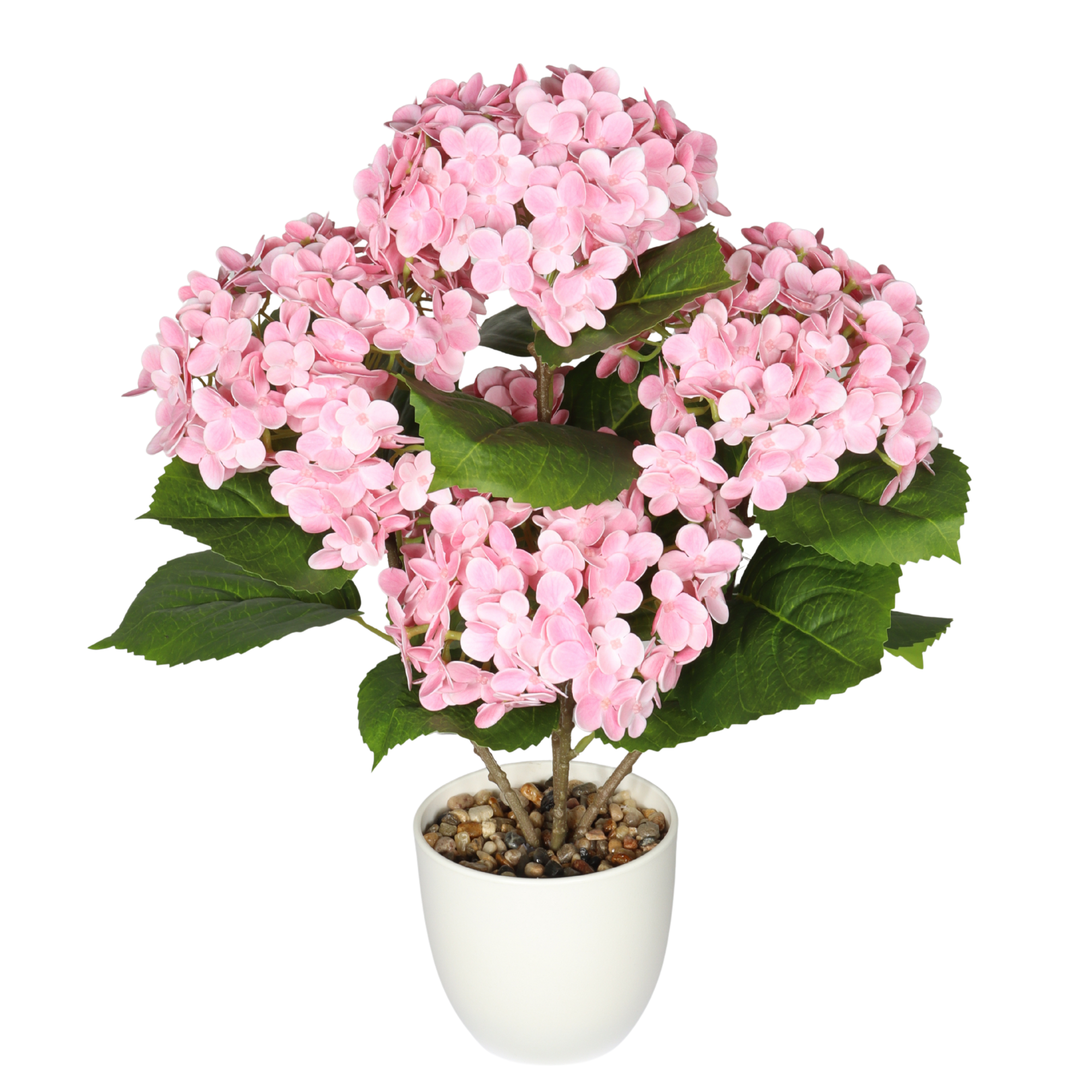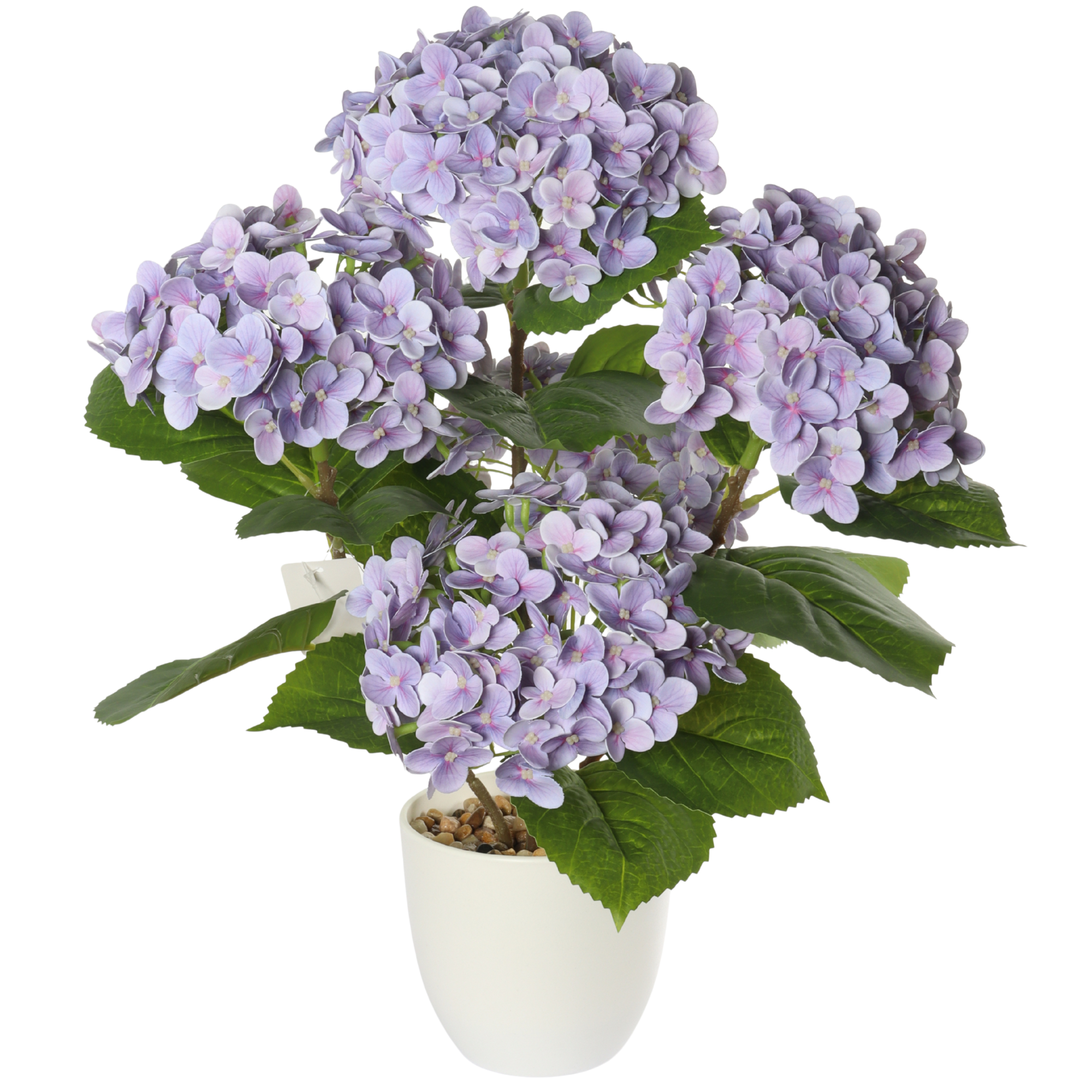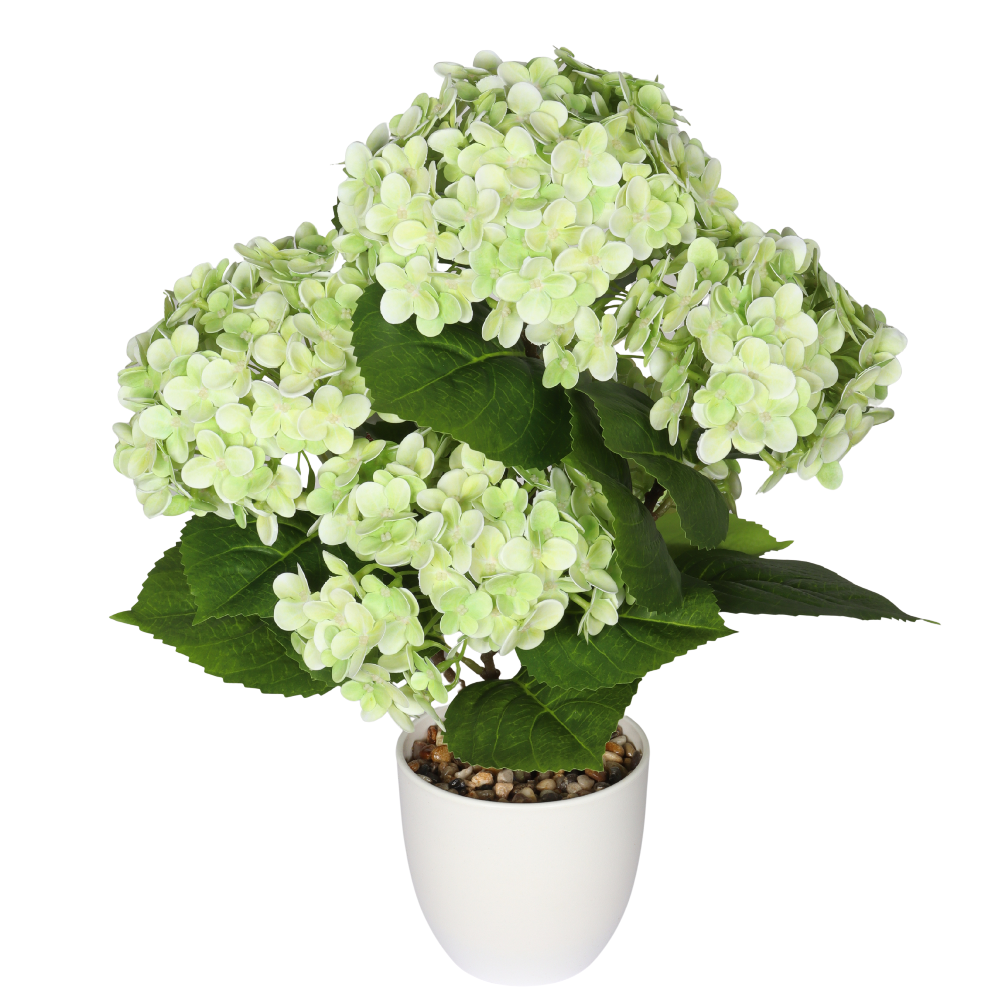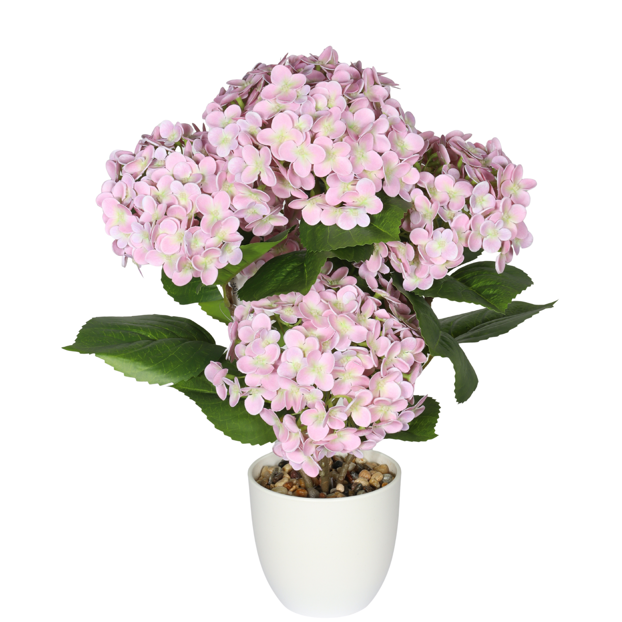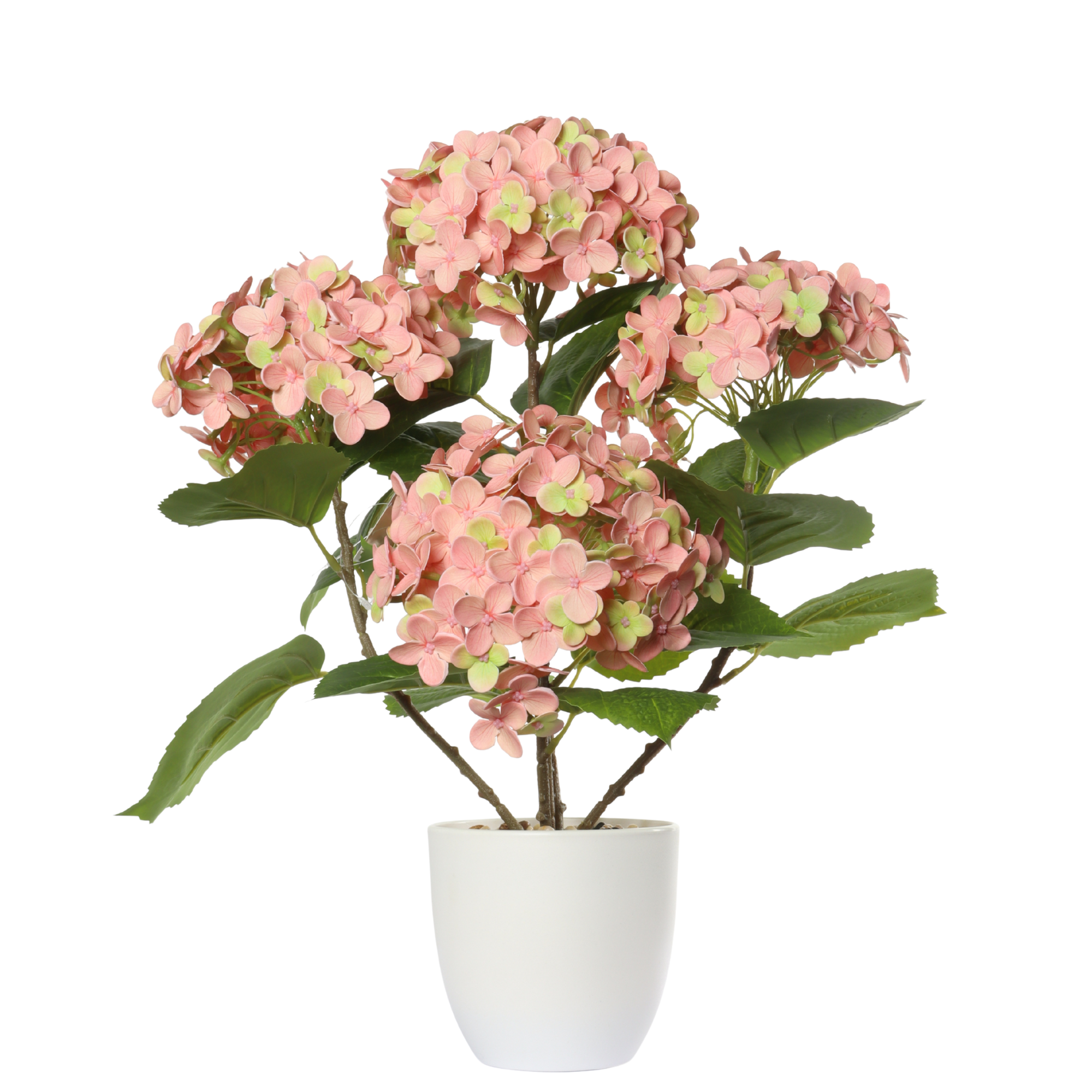 • Material: UV-resistant artificial hydrangea flowers + white plastic pot