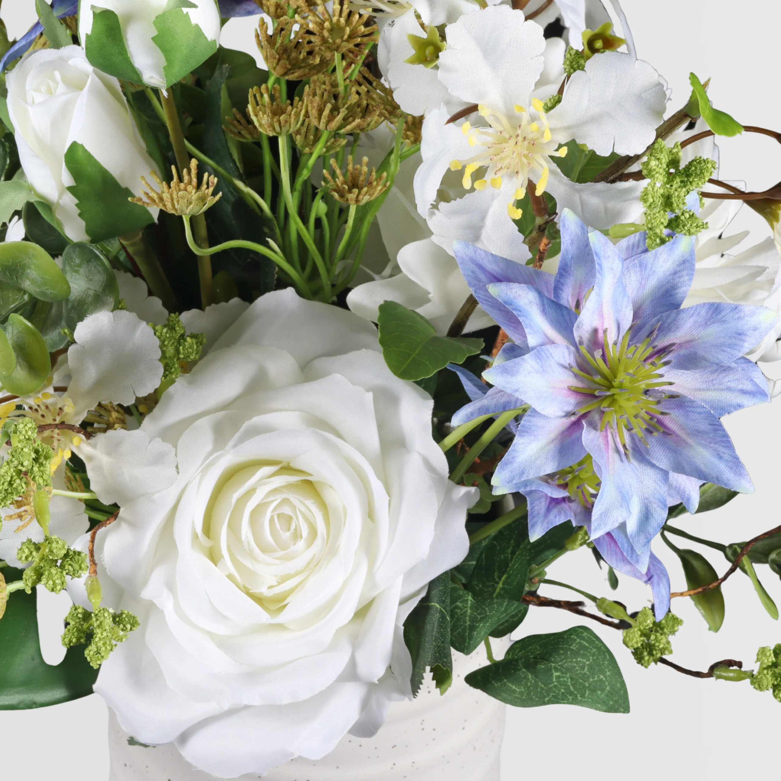 • Material: mixed faux Silk florals + plastic monstera leaves + white ceramic vase