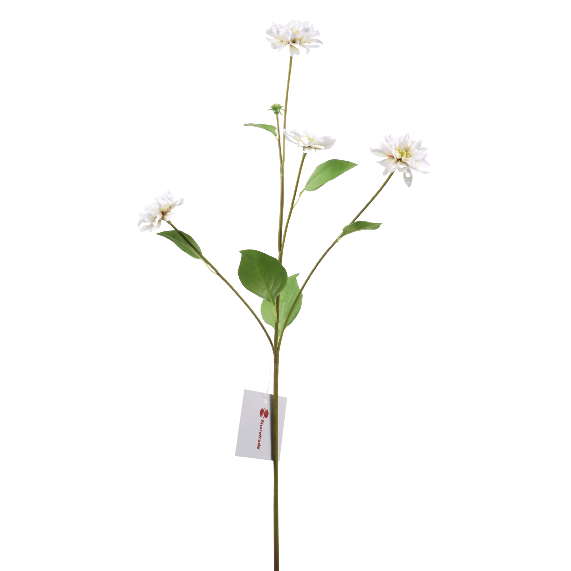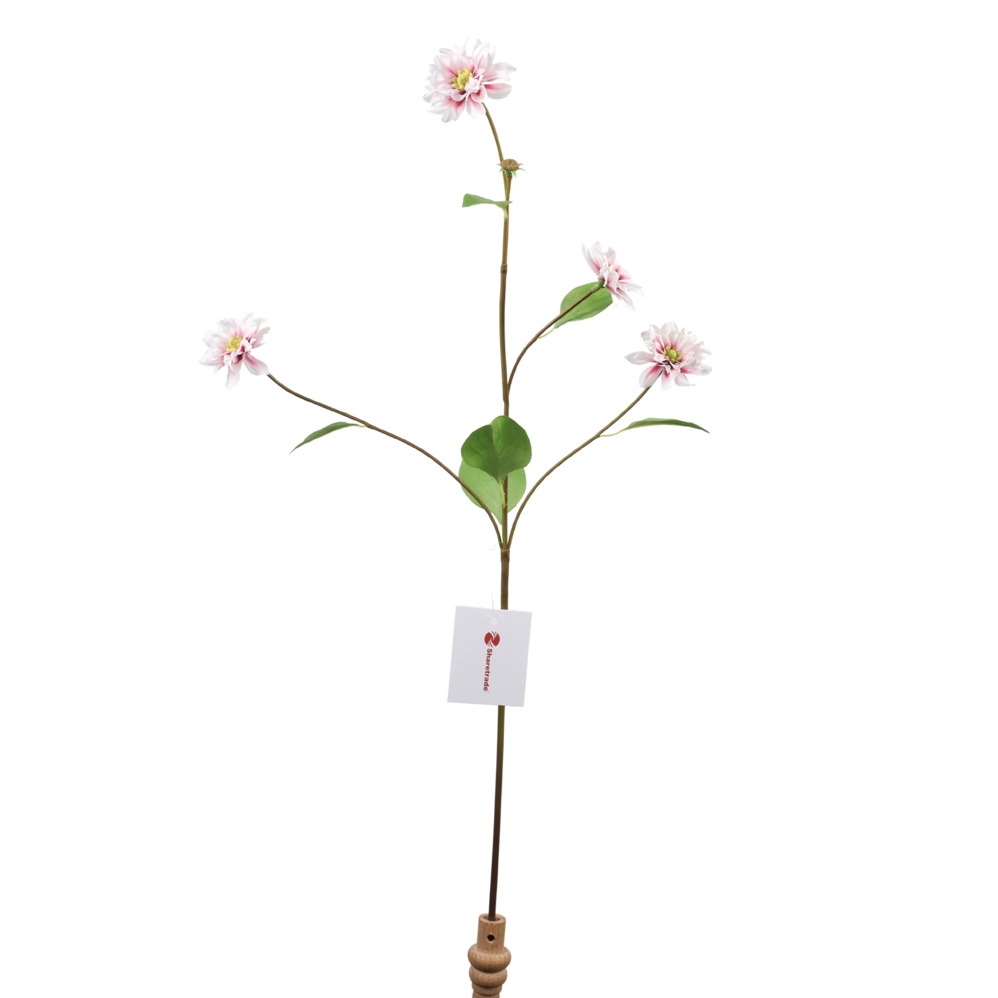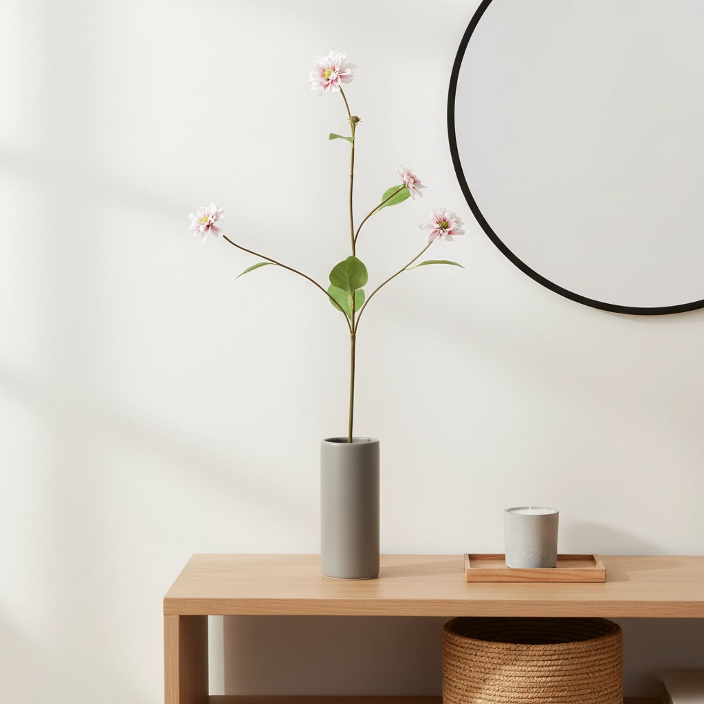 This 64cm Artificial Mini Dahlia Flower Stem features four small-scale dahlia blooms spaced along a slender branch. The smaller flower heads create a lighter, more refined look compared to standard dahlias, making it ideal as a filler or layering element in floral arrangements.