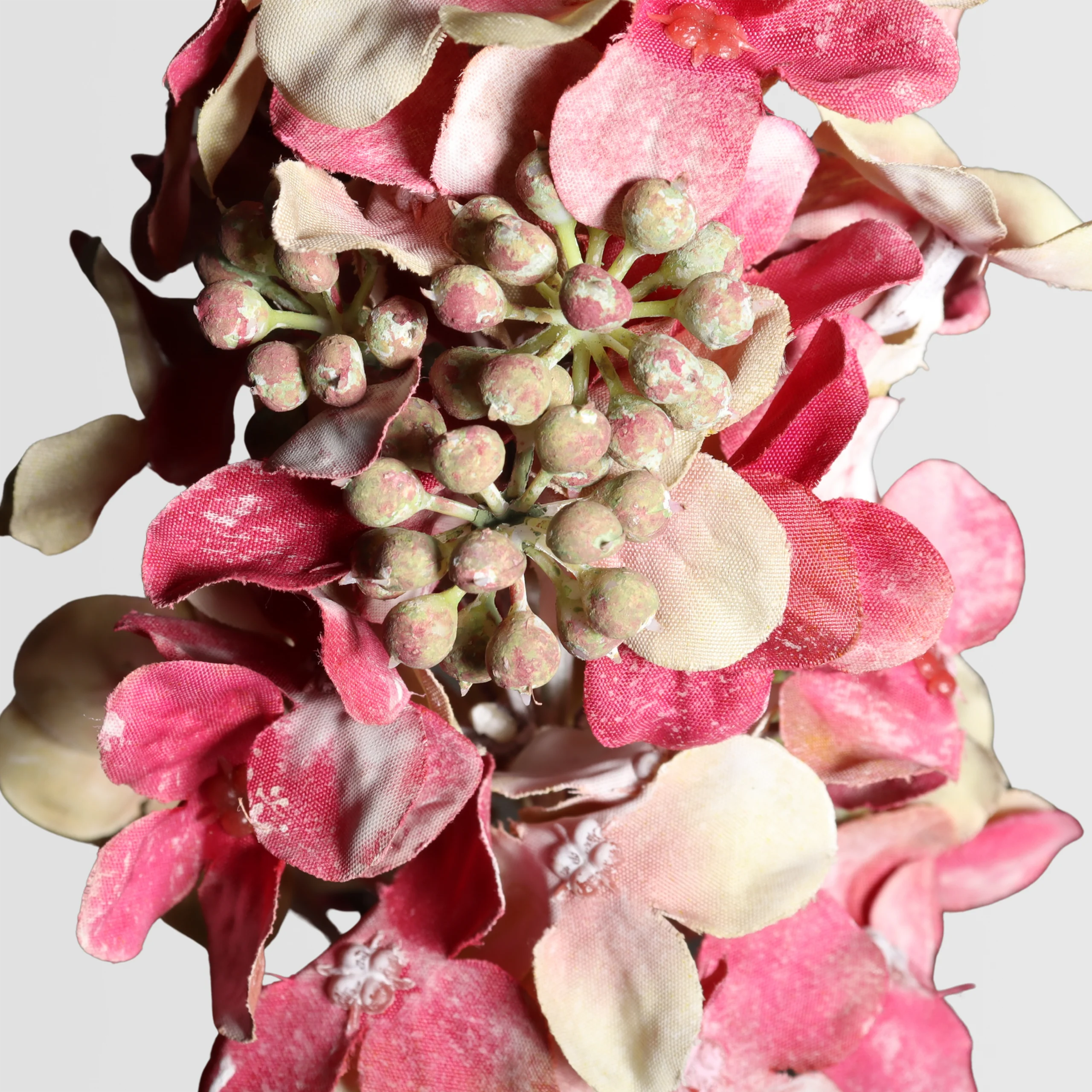 This 69cm Artificial Panicled Hydrangea Stem features elongated hydrangea clusters in warm, muted autumn shades, creating a naturally elegant, vintage-inspired look. The panicle shape adds height and flow, making it perfect for floor vases, wedding aisles, and seasonal home décor. Its rich tones blend seamlessly into fall and winter arrangements, bringing depth and character to any floral composition.