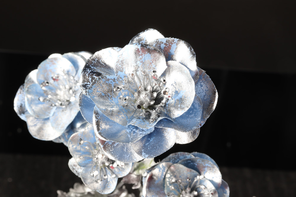This 74cm artificial Christmas camellia rose branch radiates holiday luxury with its delicately applied gold and silver glitter finish. Each bloom captures the softness of silk petals while reflecting a gentle, festive shimmer under light—making it the perfect statement piece for winter floral programs.