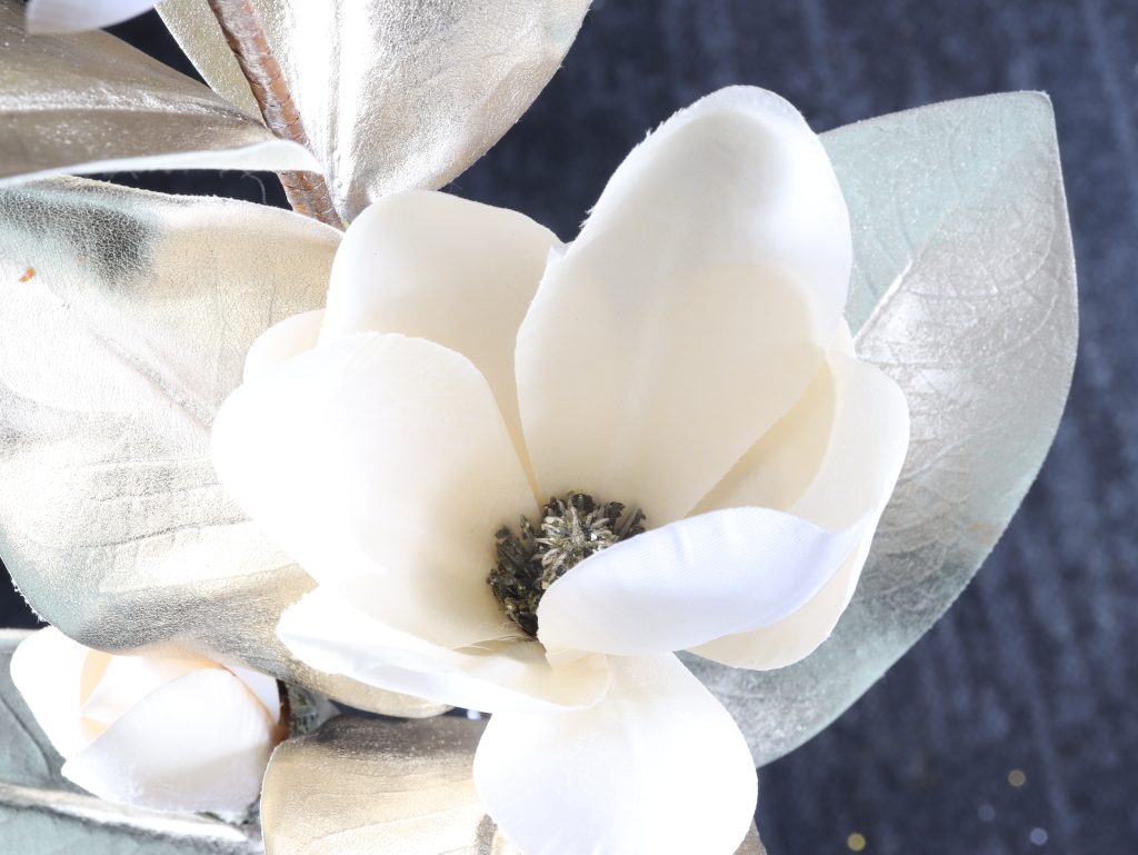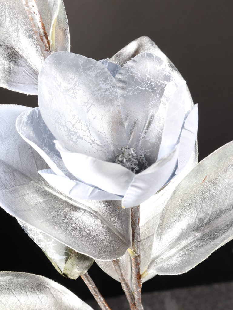 This 81cm Artificial Magnolia Branch reimagines the timeless magnolia with a modern metallic twist. Each petal and leaf is delicately coated with a soft silver sheen, catching light beautifully and adding a luxurious glow to any arrangement. The realistic branch structure makes it perfect for both minimalist interiors and festive decorative scenes.